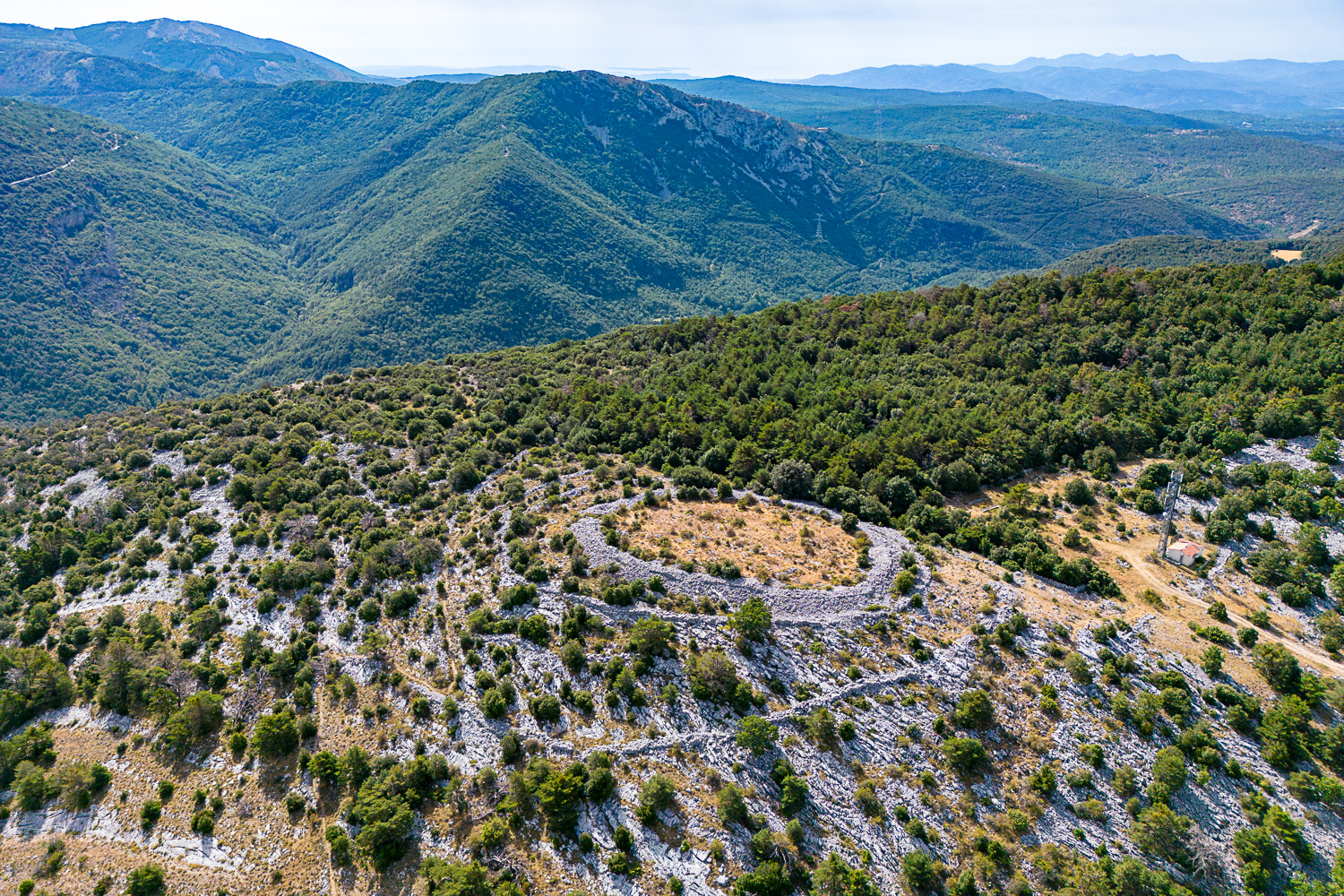 1 - Le Castellas : C’est une enceinte de sommet à 3 remparts, ovalaire, dont la superficie totale dépasse 1 ha (environ 0,3 ha pour la zone centrale) .